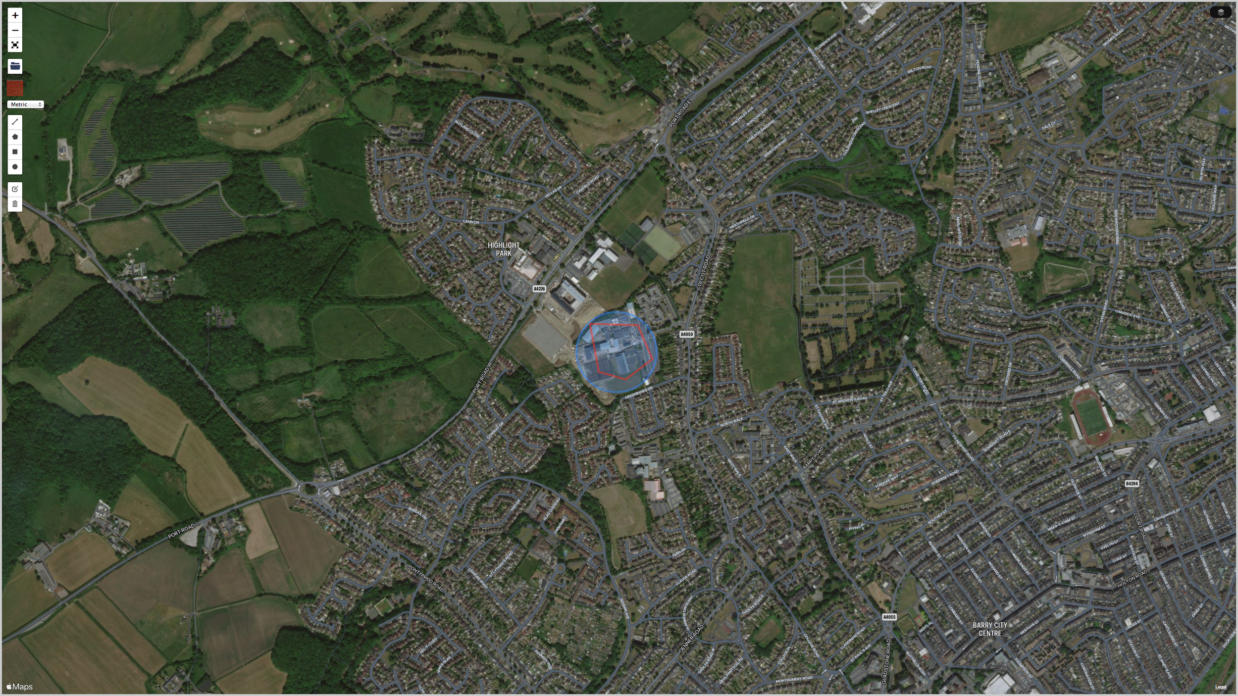 Drone flight permissions - NSF (Non Standard Flight) application inside flight restriction zone to CAA showing proposed flight path.
